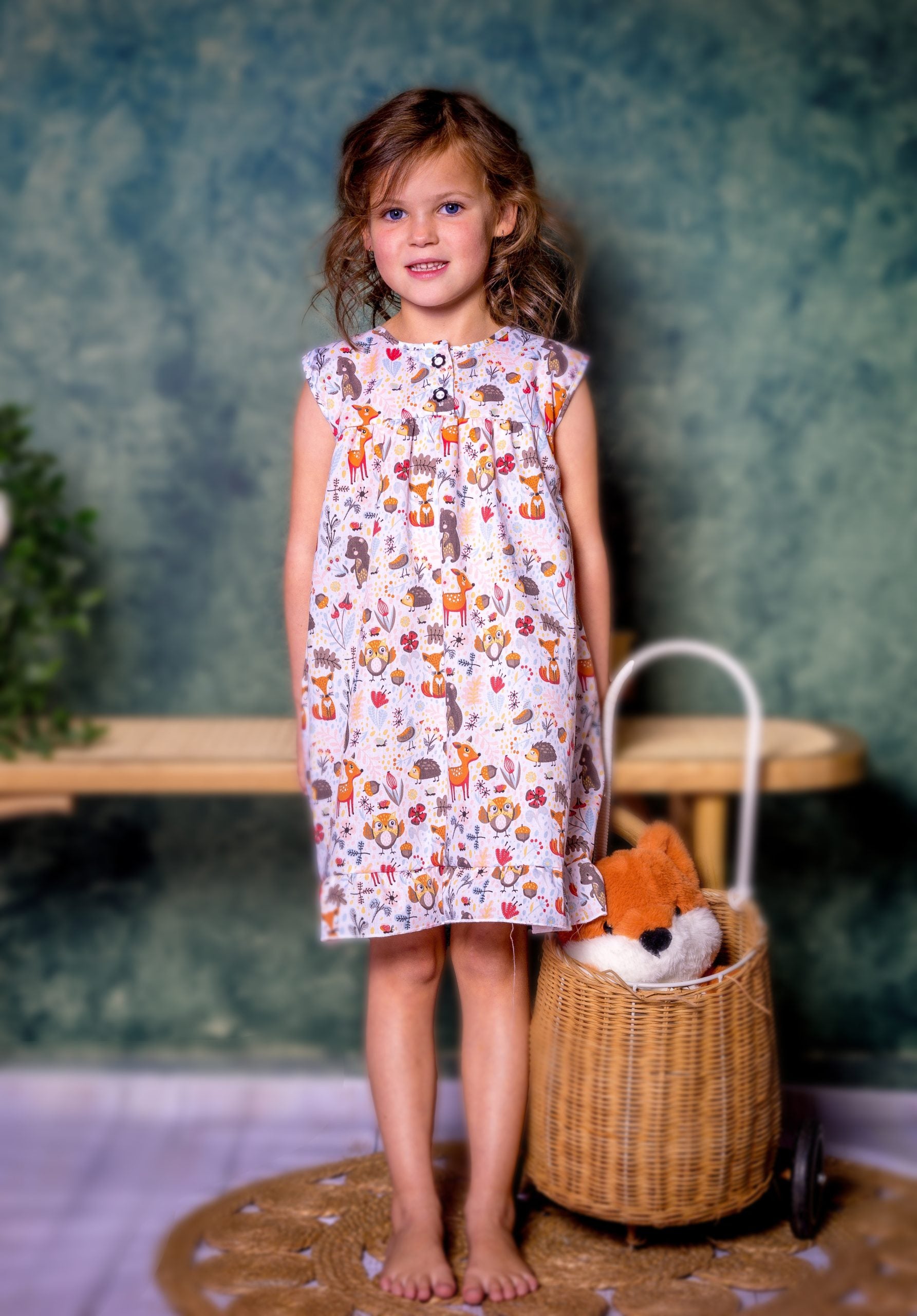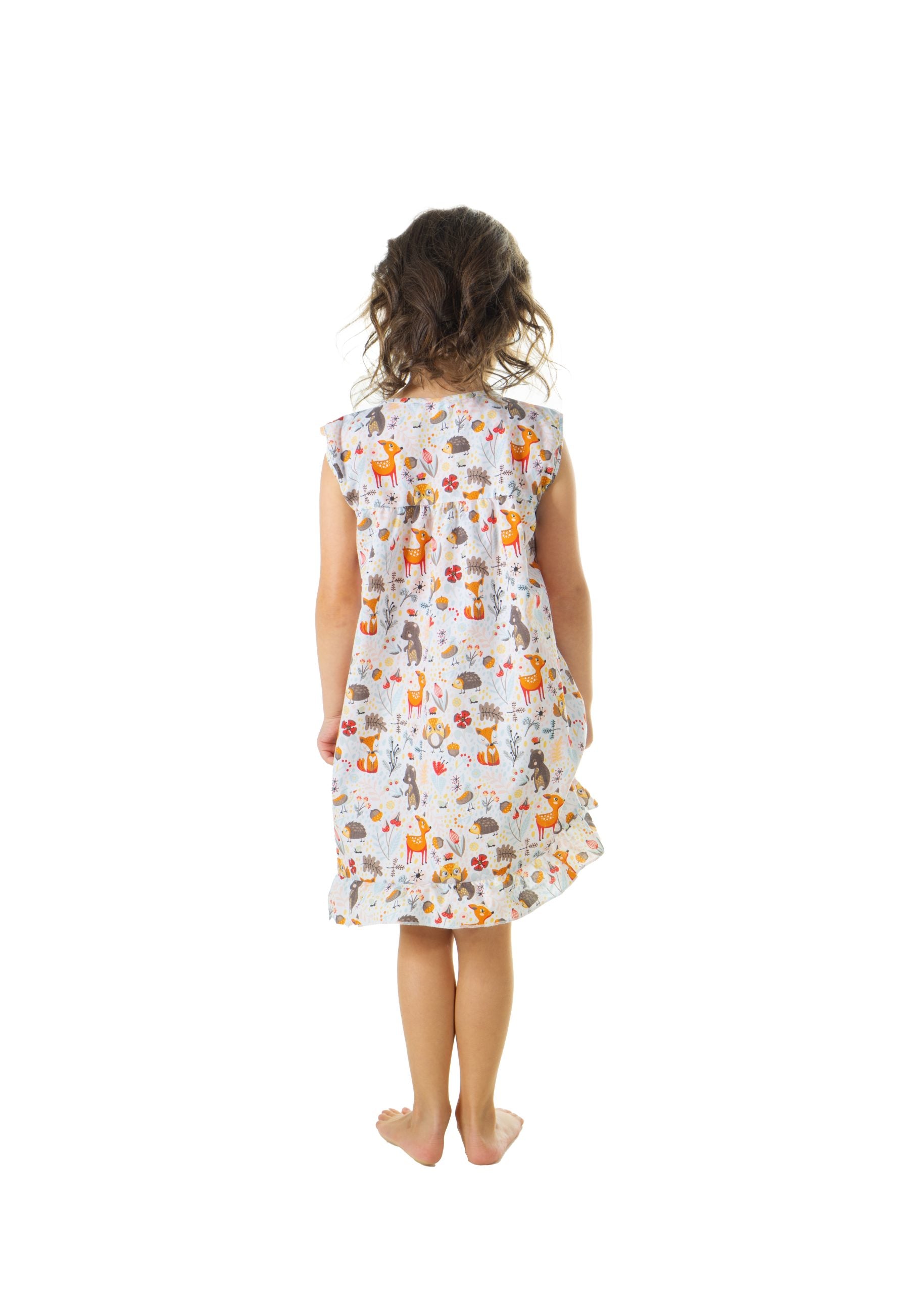 Bring woodland magic to bedtime with this delightful forest friends nightdress. Adorned with playful animal prints and charming flower buttons, this nightie features pretty frills for a touch of enchantment. Soft, breathable, and perfect for little nature lovers, it transforms ordinary nights into magical dreams.