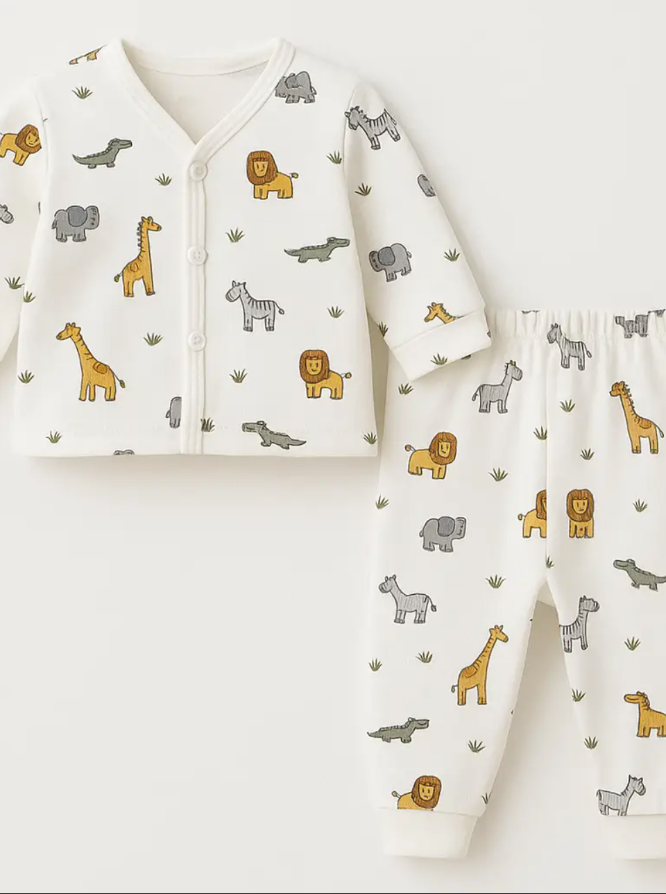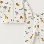 Begin a magical adventure to dreamland with our delightful safari print pyjamas. Made from organic cotton, the ribbed fabric offers a soft, breathable, and pure texture for exceptional comfort. With charming buttons down the front, these adorable pyjamas are a must-have for your baby’s wardrobe and any little explorer.