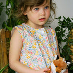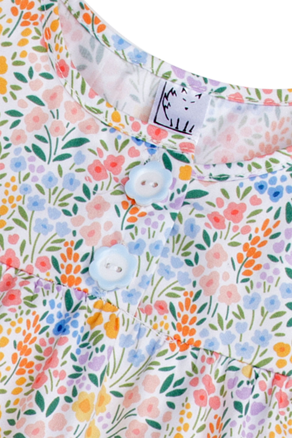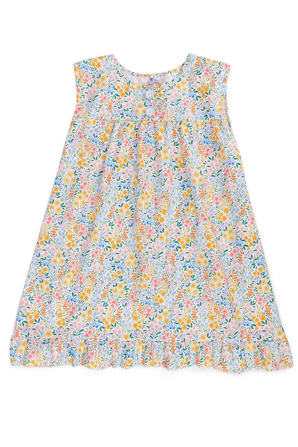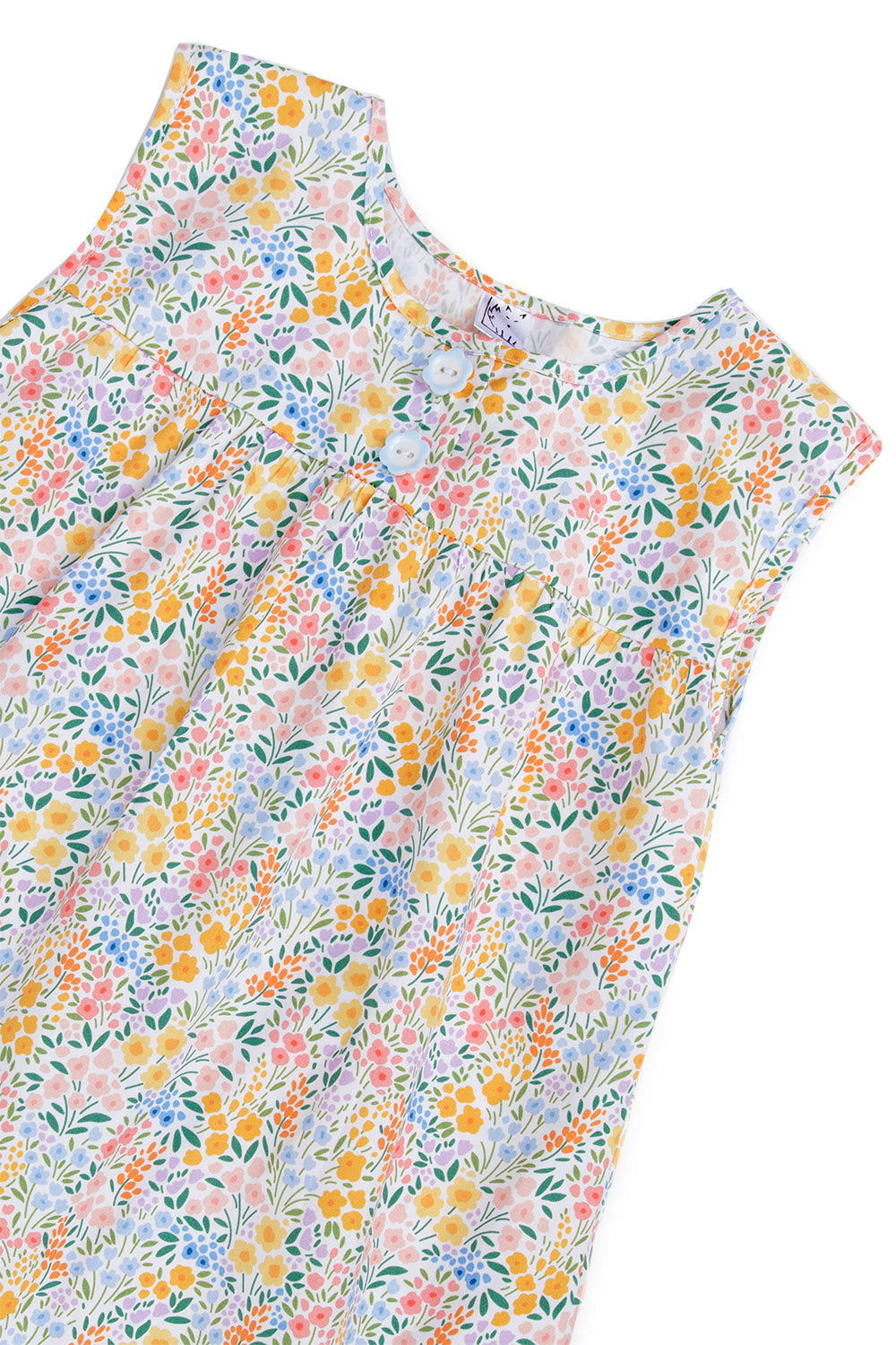 Wrap your little one in this enchanting sleeveless nightdress, adorned with a summer meadow print of delicate flowers and foliage in pink, blue, and green. Made from 100% breathable cotton, it keeps them cool and comfortable through warm nights whilst being wonderfully gentle on sensitive skin. Charming flower buttons and a frilled hem add playful touches. The quality fabric minimises irritation for peaceful sleep.