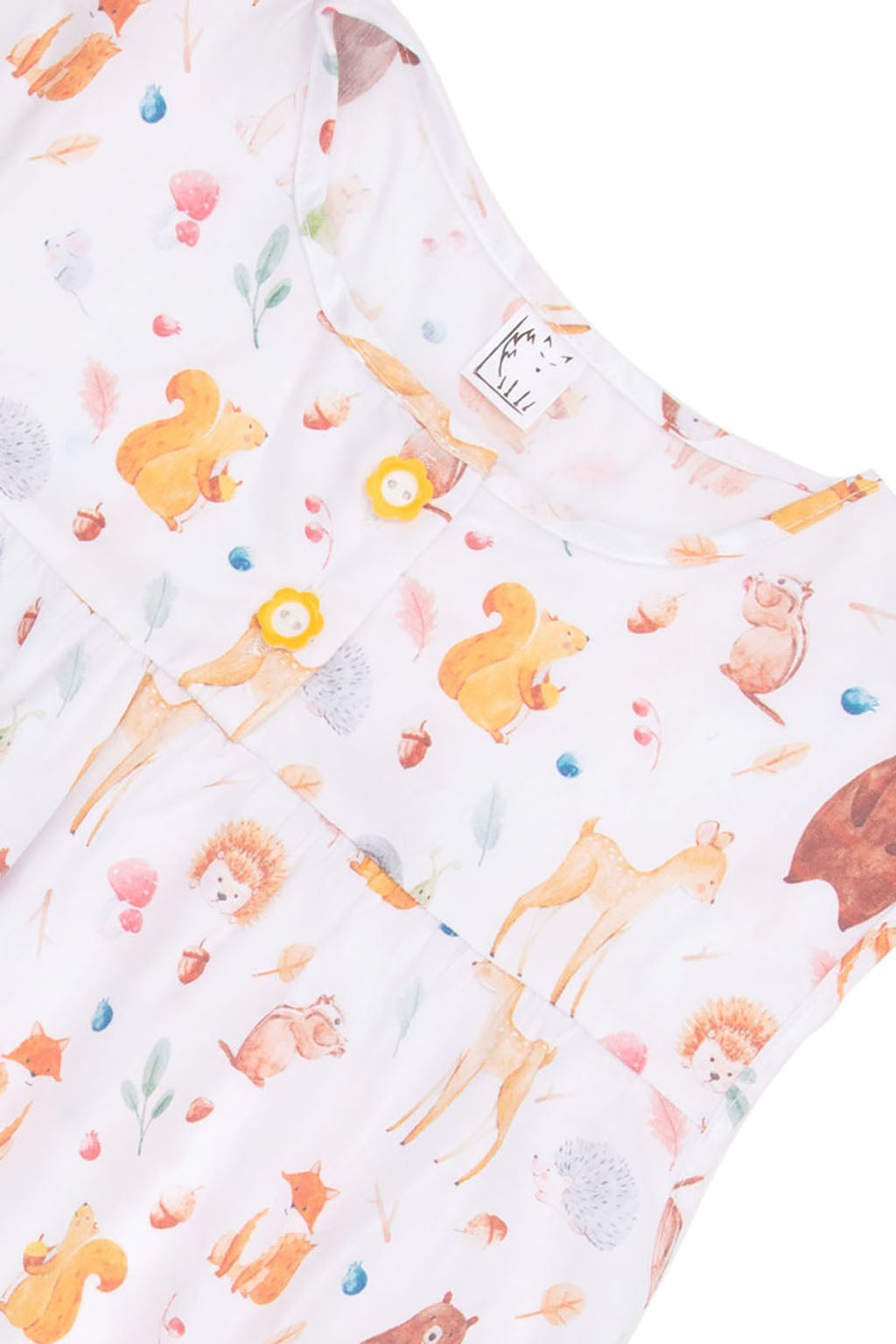 Discover bedtime enchantment with this woodland-inspired pyjama set, showcasing a captivating forest animal print. Made from 100% pure cotton, the sleeveless top is adorned with adorable flower buttons, whilst the shorts feature a charming frilled hem. Breathable and gentle against skin, it's perfectly suited for warmer evenings.
